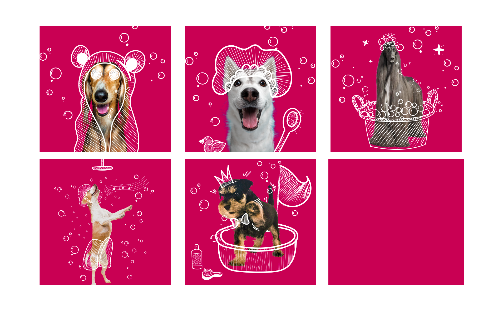 - Mise en place d’une charte graphique forte, combinant les codes des salons de toilettages, animalerie, avec ceux des salons de beautés lambdas.